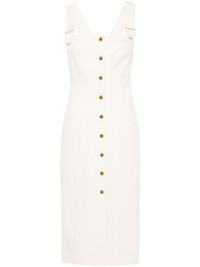 denim dungaree dress Highlights - Light beige - Cotton - Denim - Square neck - Sleeveless - Two adjustable shoulder straps - Seam detailing - Central rear vent - Internal logo tag - Mid-length - Straight hem - Front button fastening Imported Composition Cotton 100% SIZE & FIT Model measurements Height 5 ft 11 in(1.8 m) Bust/Chest 30.7 in(78 cm) Hips 35.03 in(89 cm) Waist 24.4 in(62 cm) FittingInformation Designed for a slim fit that sits just away from the body offering a close yet comfortable fit The adjustable shoulder straps allow for a preferred fit when worn Sturdy and hard-wearing, this denim piece offers no stretch This piece fits true to size – take your usual size