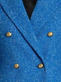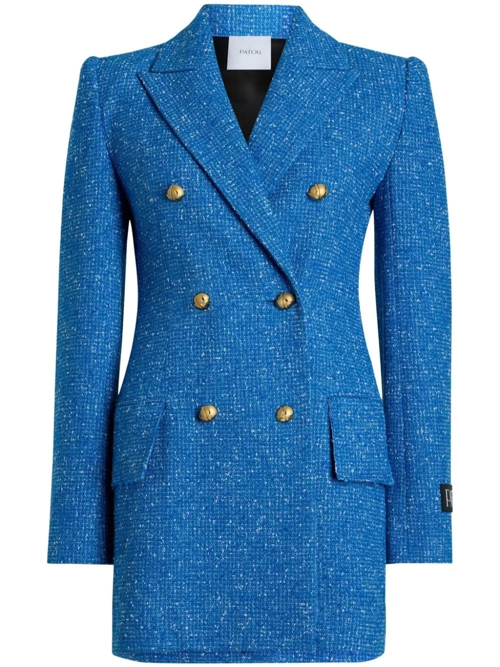 double-breasted blazer Highlights - Blue - Virgin wool - Long sleeves - Double-breasted button fastening - Front flap pockets - Gold-tone hardware Imported Composition Outer: Virgin Wool 100% Lining: Viscose Crepe 100%