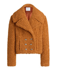 The Double Breasted Short Coat in Pumpkin Spice by Patou is a long sleeve, wide collar jacket crafted in a heavy teddy fabrication.
