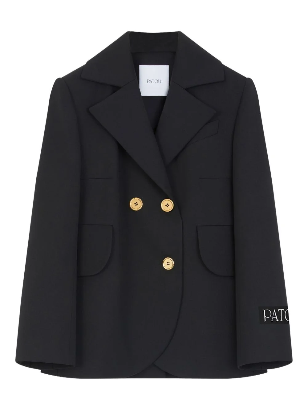 double-breasted tie jacket Highlights - Black - Double-breasted - Gold-tone buttons - Notched lapels - Flap pockets Imported Composition Outer: RWS Wool 97%, Elastane 3% Lining: Viscose 100% Washing instructions Dry Clean Only