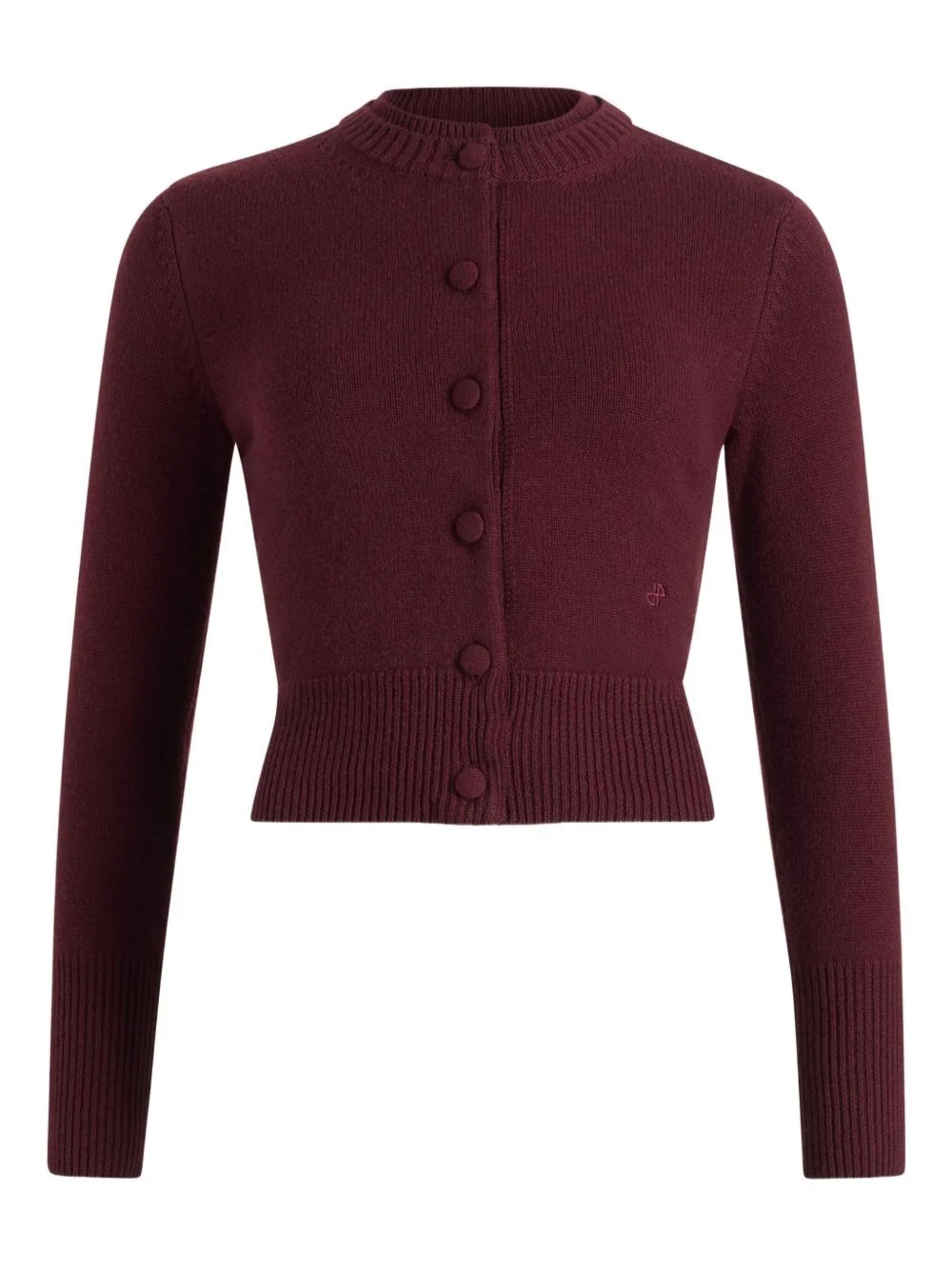 double-collar wool cardigan Highlights - Burgundy - Double collar - Button fastening - Long sleeves - Ribbed trims - Cropped length Imported Composition Cashmere 100%, Wool 100% Washing instructions Read Manufacturer Guidelines