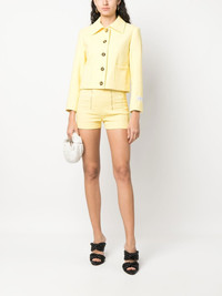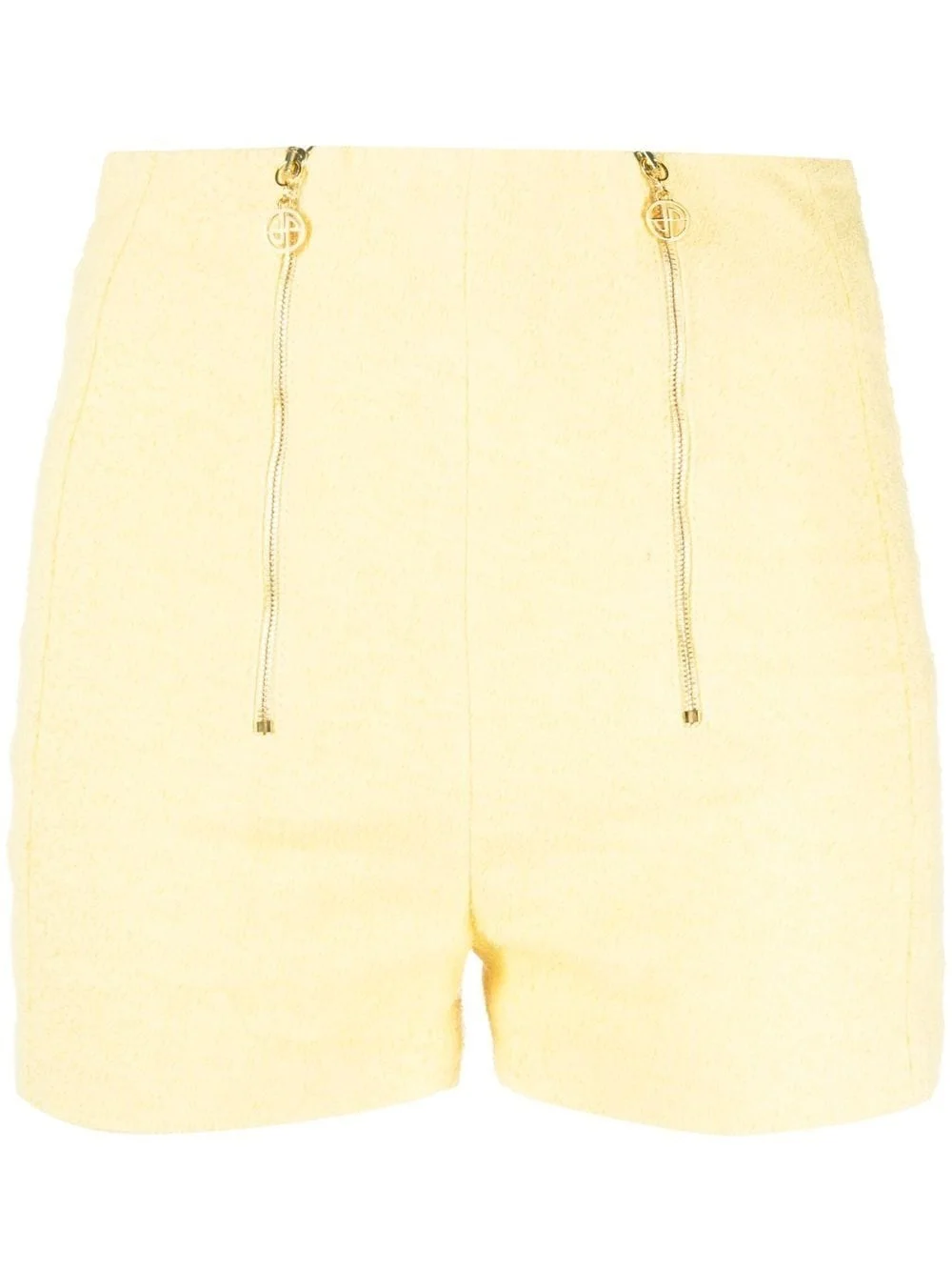 double zip fastening tailored shorts banana yellow stretch-design high waist gold-tone hardware front zip fastening branded zip puller straight hem Imported Composition Cotton 32%, Polyamide 25%, Viscose 22%, Linen/Flax 19%, Elastane 2% SIZE & FIT Model measurements Height 5 ft 10 in(1.79 m) Bust/Chest 33.07 in(84 cm) Hips 35.82 in(91 cm) Waist 24.01 in(61 cm) Washing instructions Dry Clean Only
