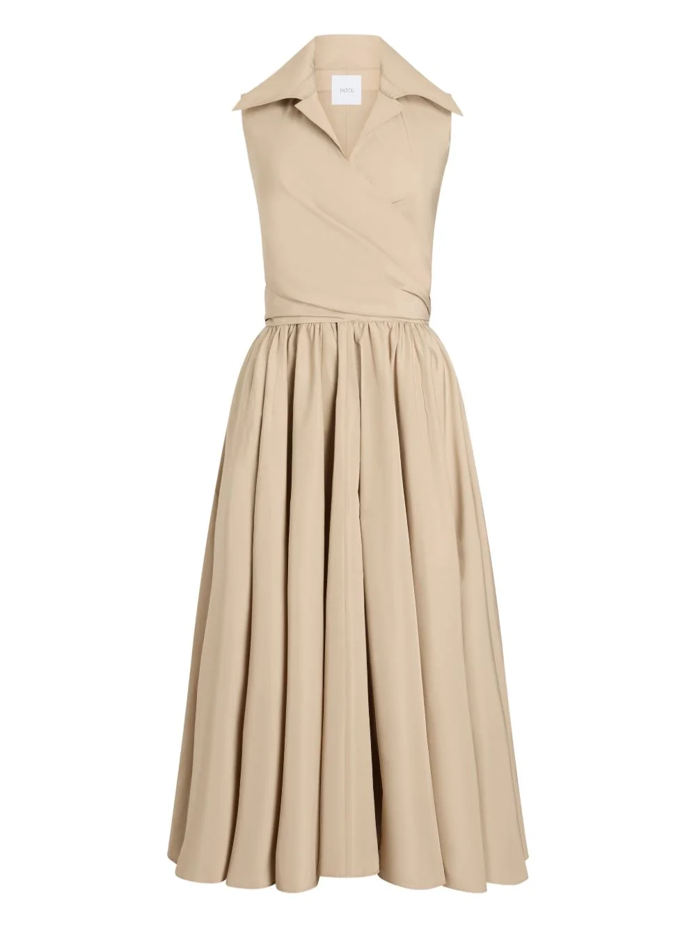 draped midi dress Highlights - Light brown - Collared - Sleeveless - Draped detail - Bow detail - Side slip pockets Imported Composition Polyester 100% Washing instructions Dry Clean Only