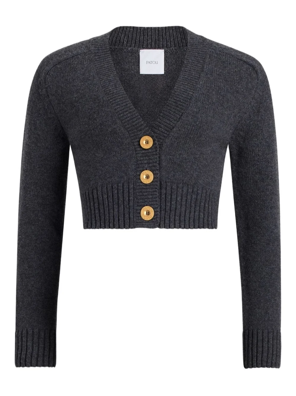 elbow-patch button cardigan Highlights - Dark grey - V-neck - Elbow patches - Ribbed hem - Long sleeves - Gold buttons Imported Composition Merino 100%