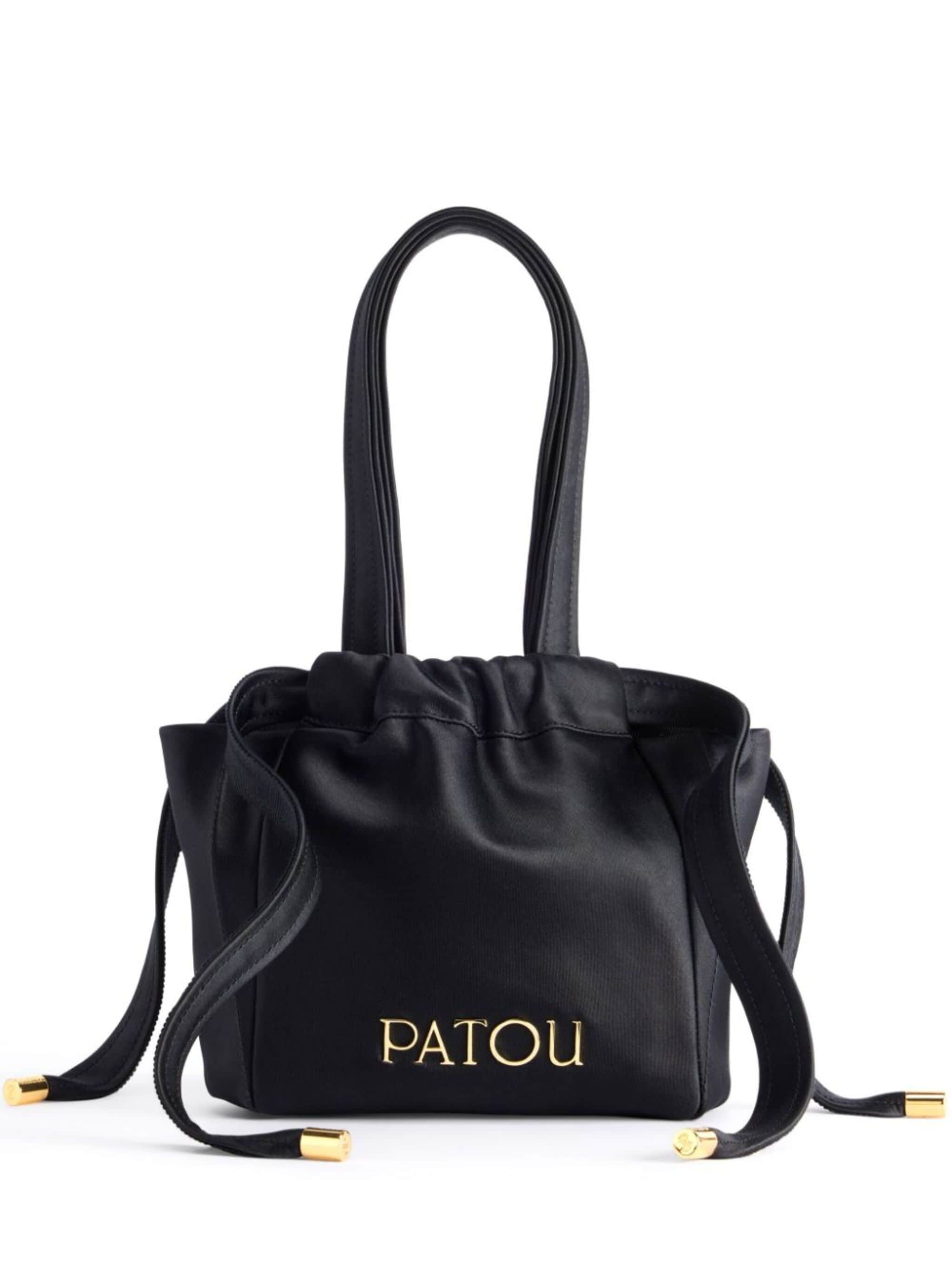 black cotton/recycled polyester gold-tone logo lettering two top handles drawstring fastening main compartment This item is made from at least 50% recycled or upcycled materials. For recycled synthetic clothing products, we highly recommend using a microfibre-catching washing bag to ensure that no microplastics that can pollute water are released in the process. Learn more about what makes a product Conscious on our Conscious Criteria page Size & Fit Model Measurements: Bust: 0cm Height: 0cm Hips: 0cm Waist: 0cm Fabric and Care Designer Style ID: AC0740171999B Designer Colour: 999B BLACK Composition: Outer: Recycled polyester 100%; Lining: Cotton 100%Made in Madagascar