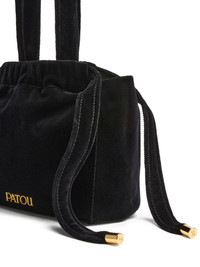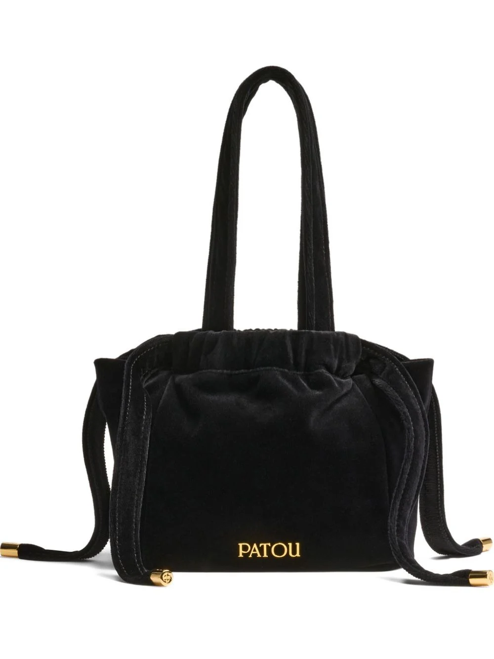 Evening velvet drawstring bag Highlights - Black - Velvet texture - Drawstring closure - Top handles - Gold-tone metal details - Logo lettering Imported Composition Outer: Cotton 100% SIZE & FIT Measurement HEIGHT 8.46 in(21.5 cm) WIDTH 6.49 in(16.5 cm) HANDLE 17.71 in(45 cm)