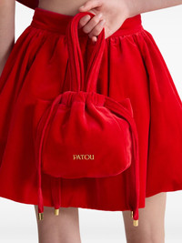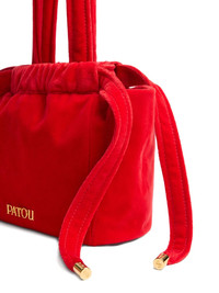 Evening velvet drawstring bag Highlights - Red - Velvet texture - Drawstring closure - Top handles - Gold-tone hardware - Gathered detailing Imported Composition Outer: Cotton 100% SIZE & FIT Measurement HEIGHT 8.46 in(21.5 cm) WIDTH 6.49 in(16.5 cm) HANDLE 17.71 in(45 cm)