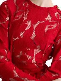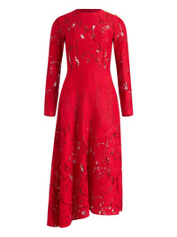 floral-lace asymmetric dress Highlights - Red - Organic cotton lace - Asymmetric hem - Long sleeves - Round neck - Shoulder button detail Imported Composition Outer: Organic Cotton 100% Lining: Viscose 100% Washing instructions Dry Clean Only