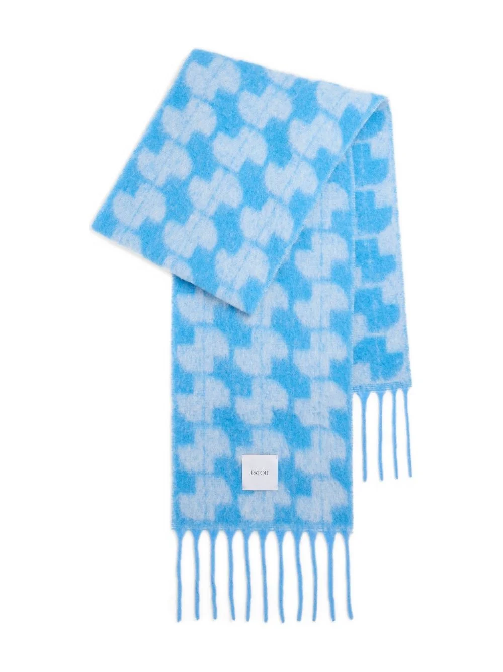 geometric-pattern fringed scarf Highlights - Sky blue - Geometric pattern - Fringed edges - Logo label Made in Italy Composition Alpaca Wool 80%, Polyamide 20% SIZE & FIT Measurement LENGTH 85.03 in(216 cm) WIDTH 11.81 in(30 cm) Washing instructions Hand Wash