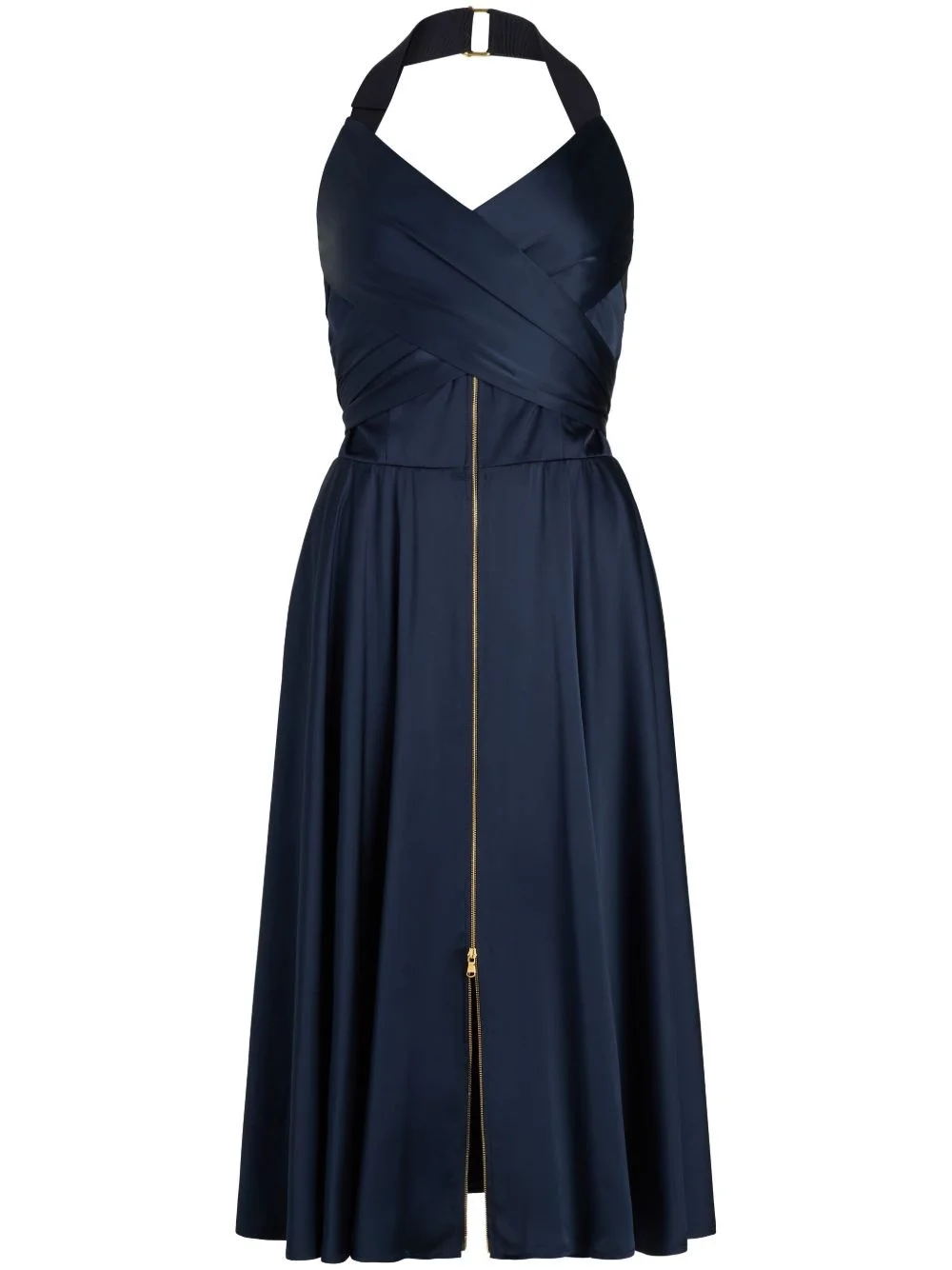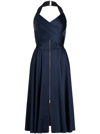 halterneck satin midi dress Highlights - Navy blue - Front zip fastening - Rear bow fastening - Pleat detailing Imported Composition Viscose 100%