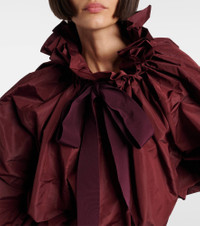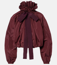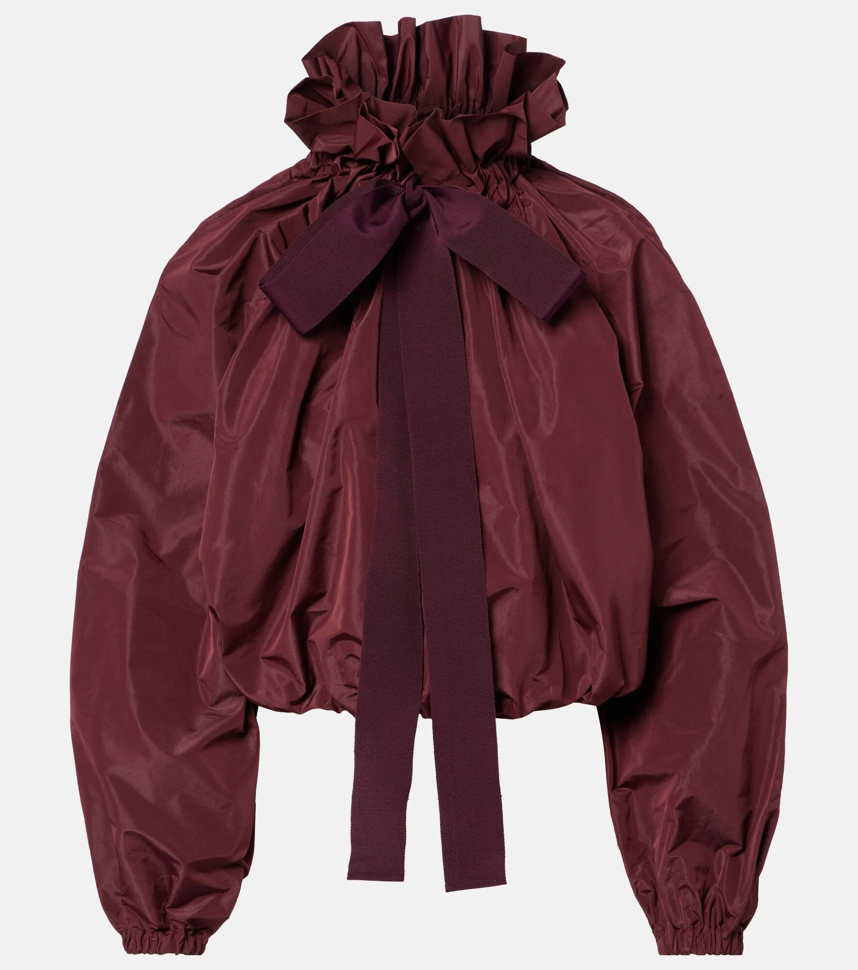 Patou continues to define Parisian style with joyful and refined designs. The Iconic blouse showcases a voluminous silhouette, a bow detail at the collar, and ruched elasticated cuffs and hem. Product Details - Material: 100% polyester - Care instructions: hand wash - Made in Poland - Designer color name: Vignola - Item color: burgundy - Details: 55% cotton, 45% viscose - Cuff: elasticated - Hem: elasticated - Item number: P01066235 Size & Fit - True to size - Elasticated hem - Oversized - Non-stretchy fabric - Slightly cropped - The model seen in the picture is 178cm-5'10" and wearing a size FR 36