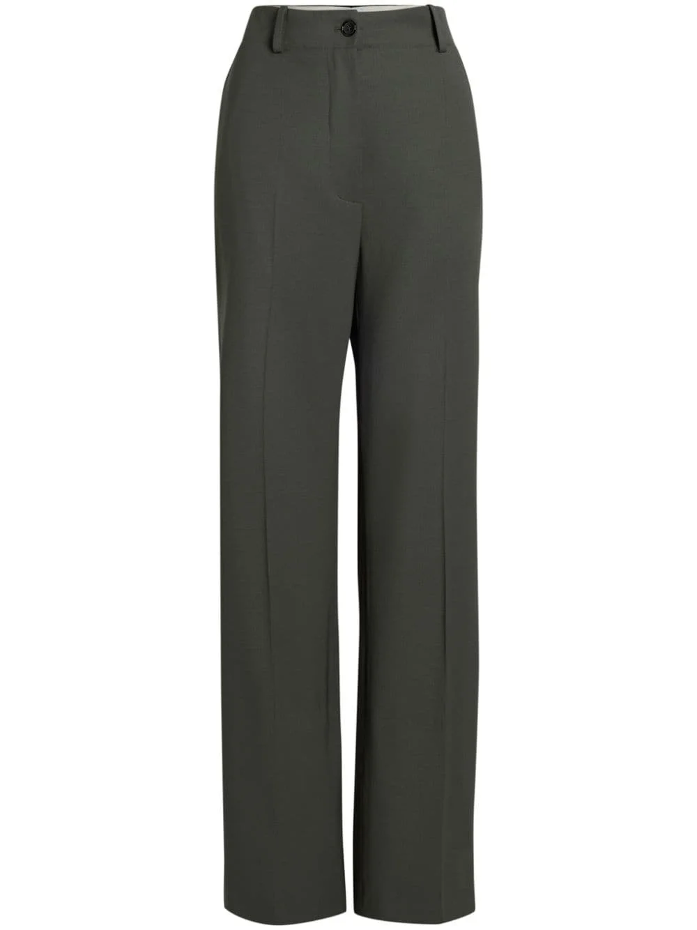 Iconic long trousers Highlights - Khaki - Stretch sustainable wool - Technical jersey - Pleat detailing - High-waisted - Concealed fly and button fastening - Belt loops - Straight leg - Two side slit pockets Imported Composition Outer: RWS Virgin Wool 97%, Elastane 3%