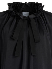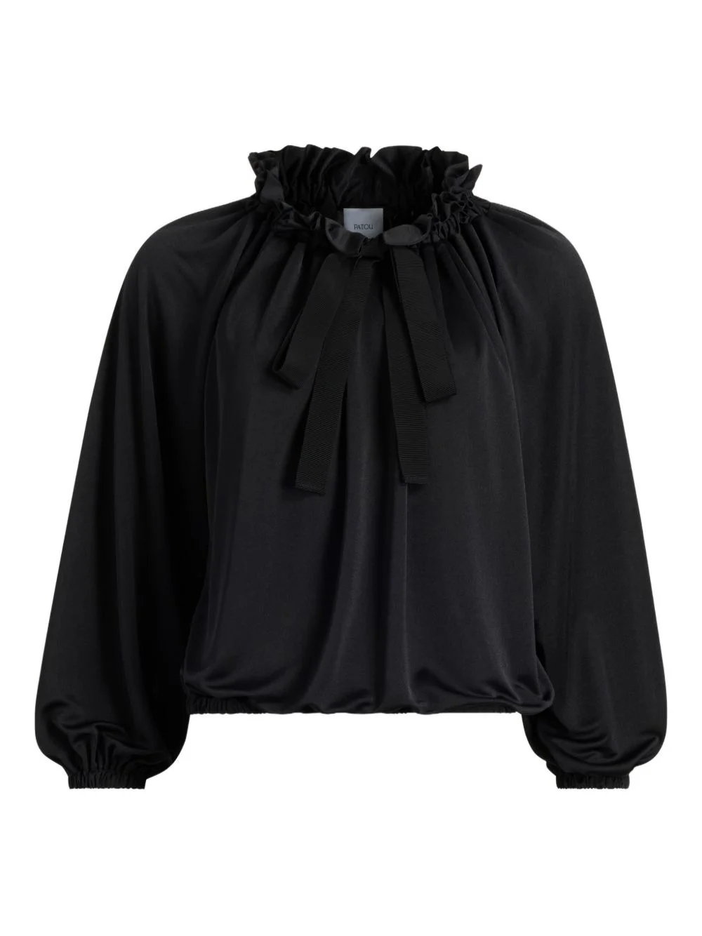 ruffled drawstring top Highlights - Black - Ruffled neckline - Drawstring detail - Balloon sleeves - High neck Imported Composition Cotton 100%, Polyester 100% Washing instructions Hand Wash