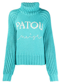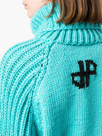 intarsia-knit logo jumper turquoise/white merino wool chunky knit ribbed detailing intarsia-knit logo roll neck long sleeves straight hem Imported Composition Virgin Wool 100% SIZE & FIT Model measurements Height 5 ft 10 in(1.78 m) Bust/Chest 33.46 in(85 cm) Hips 36.22 in(92 cm) Waist 23.22 in(59 cm) FittingInformation This piece fits true to size. We recommend you get your regular size Cut for a relaxed fit Made with a mid-weight fabric Washing instructions Hand Wash