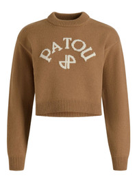 intarsia-logo jumper Highlights - Brown - Intarsia logo - Intarsia monogram - Round neck - Long sleeves - Cropped length Imported Composition Wool 100% Washing instructions Hand Wash