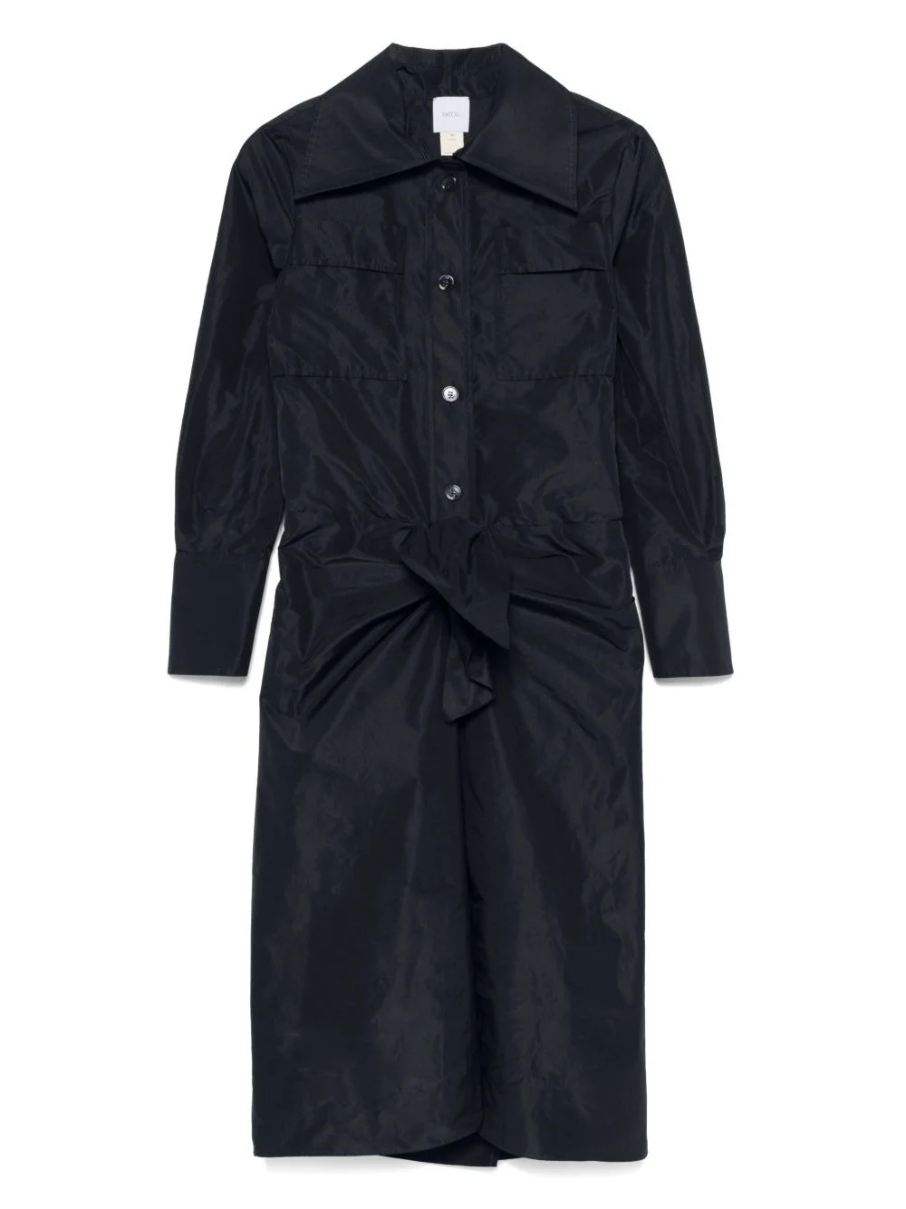 knot-detail dress Highlights - Black - Front button fastening - Two chest flap pockets - Pointed flat collar - Buttoned cuffs Imported Composition Polyester 100% SIZE & FIT Model measurements Height 5 ft 10 in(1.79 m) Bust/Chest 35.43 in(90 cm) Hips 35.03 in(89 cm) Waist 25.19 in(64 cm) FittingInformation Designed for a relaxed fit, this piece allows for comfort and movement when worn Made from a midweight non-stretch fabric Washing instructions Dry Clean Only