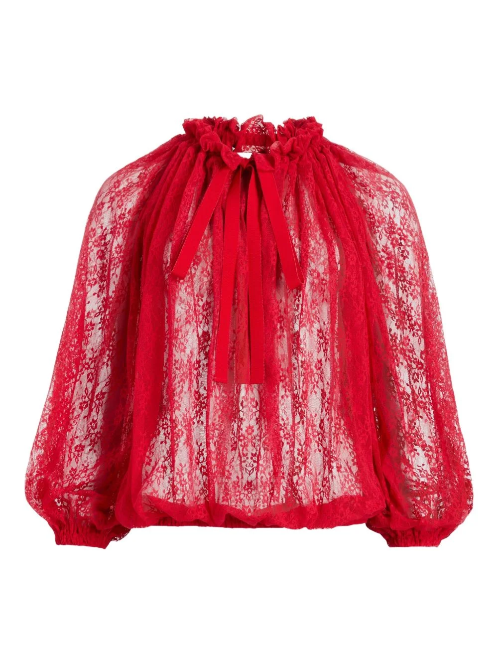 lace drawstring top Highlights - Red - Lace fabric - Drawstring neckline - Balloon sleeves - Gathered neckline - Sheer fabric Imported Composition Polyamide 100%, Cotton 55%, Viscose 45% Washing instructions Read Manufacturer Guidelines