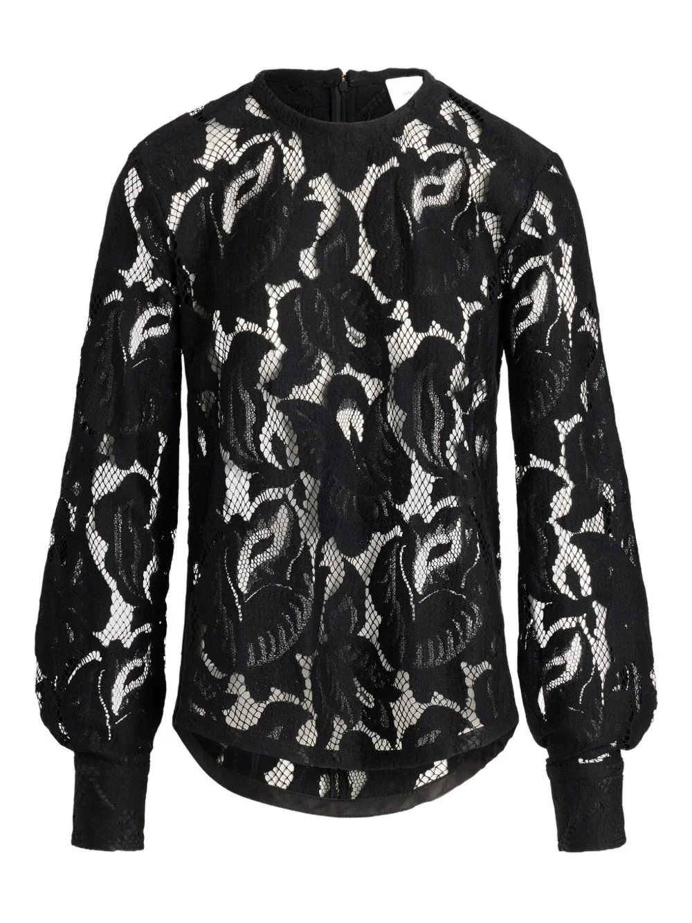 balloon-sleeve lace top Highlights - Black - Floral lace - Long sleeves - Balloon sleeves - Round neck Imported Composition Organic Cotton 79%, Cotton 18%, Polyamide 3% Washing instructions Read Manufacturer Guidelines