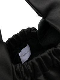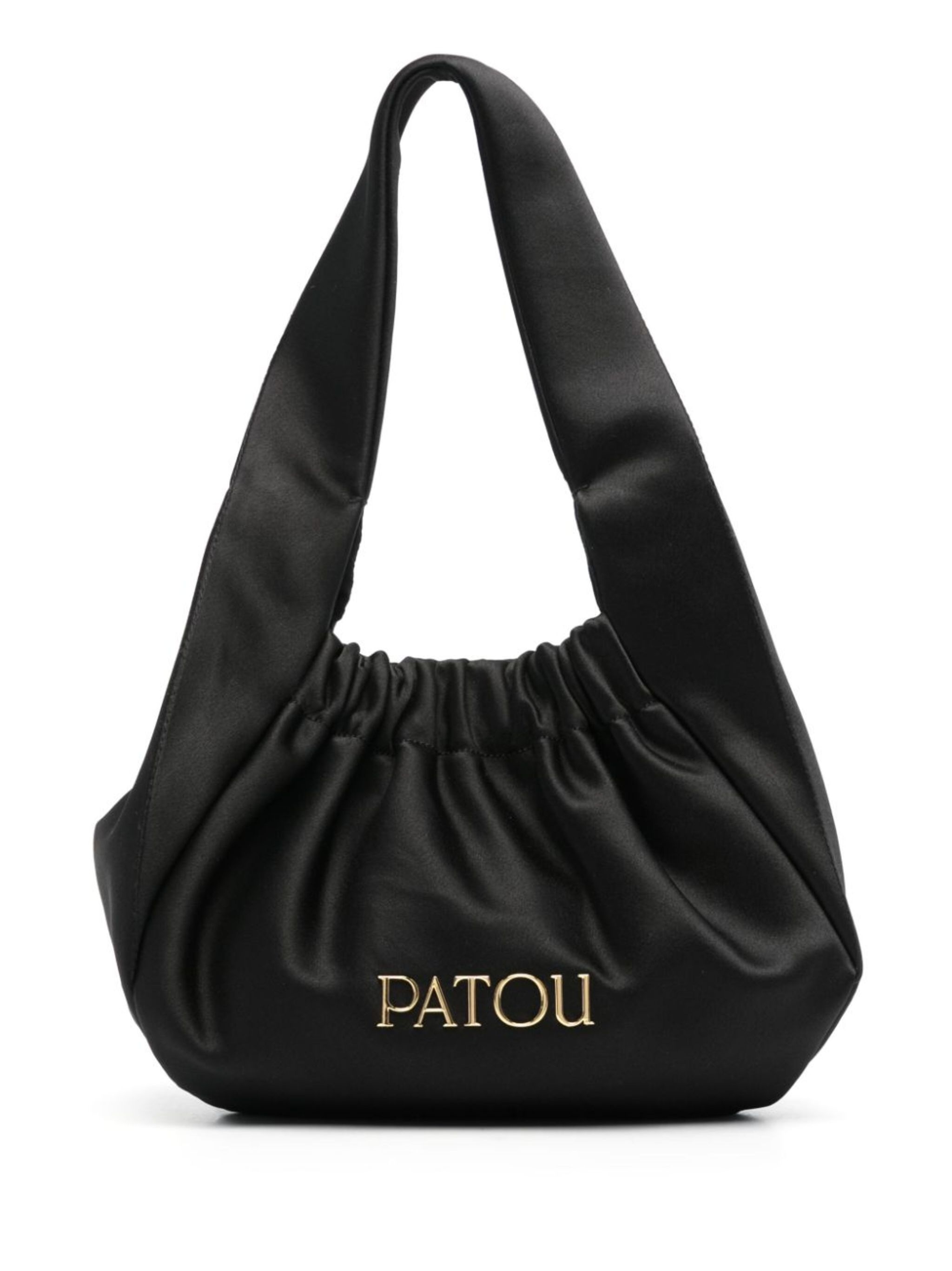 black satin weave gold-tone logo lettering elasticated trim gathered detailing single top handle main compartment full lining concealed magnetic fastening Size & Fit Model Measurements: Bust: 0cm Height: 0cm Hips: 0cm Waist: 0cm DEPTH: 12cm HANDLE: 18cm HEIGHT: 17cm WIDTH: 23cm Fabric and Care Designer Style ID: AC0540171999B Designer Colour: 999B BLACK Composition: Outer: Polyester 100%, Zamac 100%Made in Madagascar