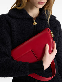 Le Patou half-moon leather shoulder bag Highlights - Red - Half-moon shape - Leather construction - Gold-tone clasp - Single shoulder strap - Panelled design Made in Italy Composition Calf Leather 100% SIZE & FIT Measurement DEPTH 2.36 in(6 cm) HEIGHT 5.9 in(15 cm) STRAP 18.5 in(47 cm) WIDTH 9.84 in(25 cm)