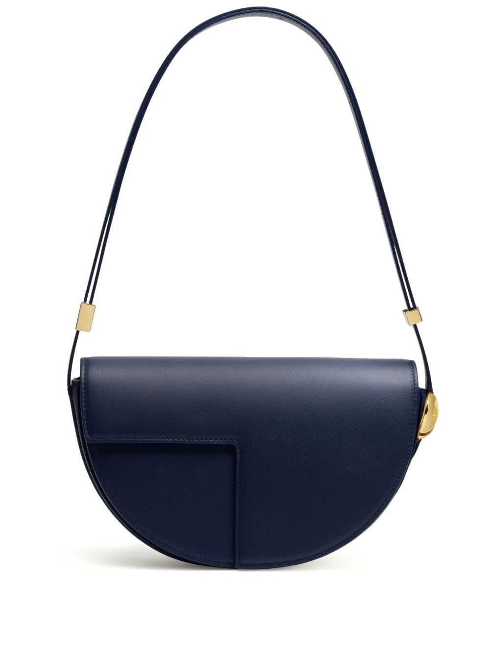 Le Patou leather shoulder bag Highlights - Navy blue - Foldover top with magnetic fastening - Adjustable shoulder strap - Rear slit pocket - Main compartment Imported Composition Outer: Calf Leather 100%