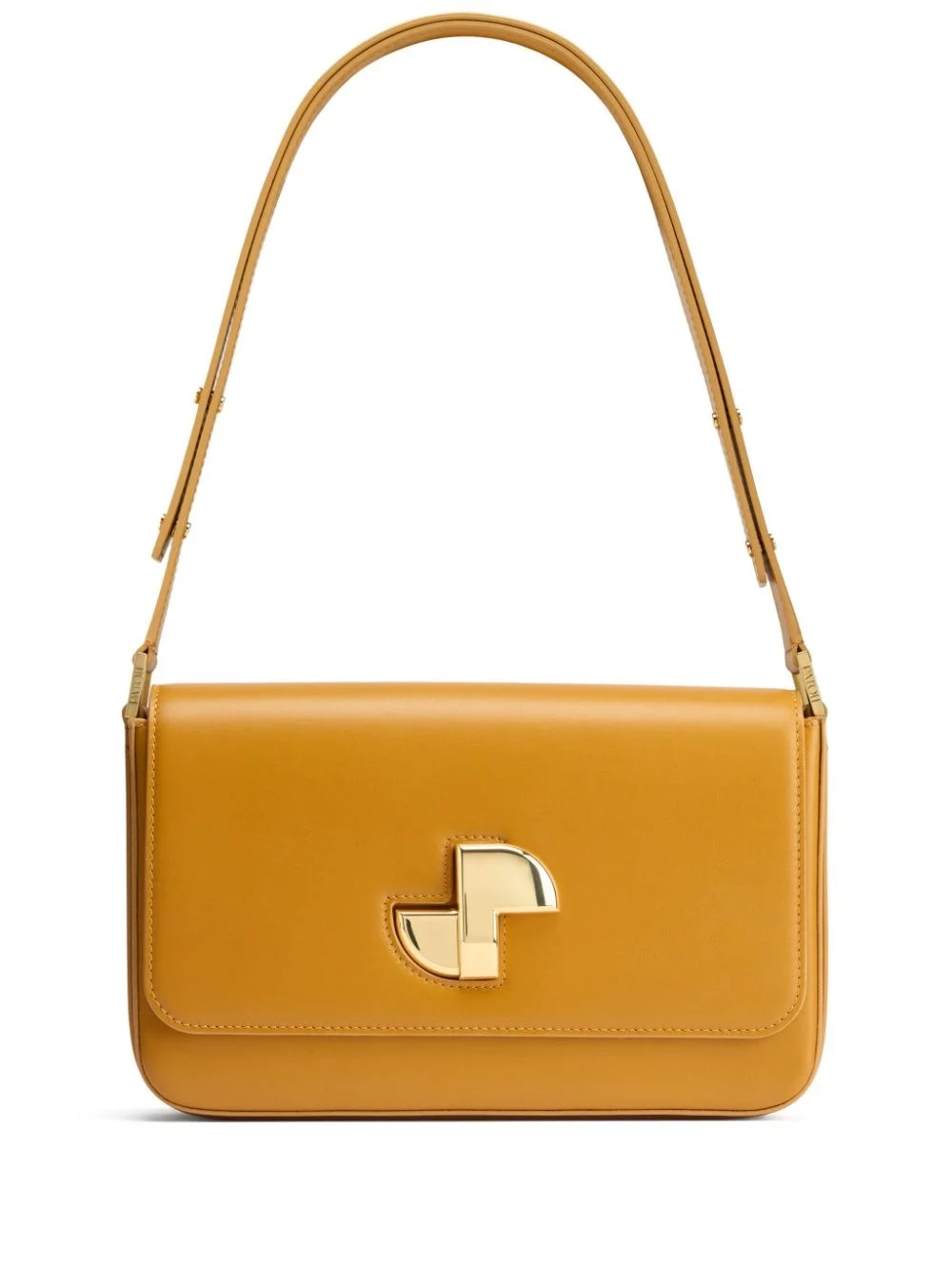 Le Patou Lock shoulder bag Highlights - Mustard yellow - Calf leather - Smooth grain - Logo plaque - Adjustable top handle - Front flap closure - Push-lock fastening - Gold-tone hardware Imported Composition Outer: Calf Leather 100%