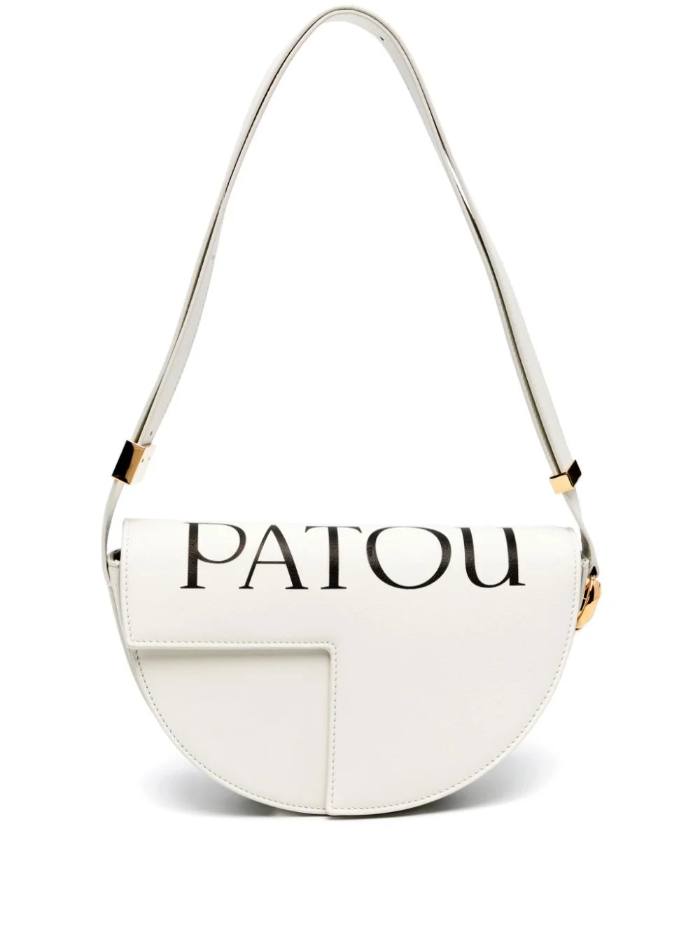 Le Patou logo shoulder bag Highlights - White - Calf leather - Smooth grain - Accordion design - Adjustable shoulder strap - Logo-engraved gold-tone hardware - Logo print to the front - Logo plaque to the side - Rear slit pocket - Internal logo plaque - Partitioned compartment - Internal logo patch - Gold-tone hardware - Foldover top with magnetic fastening Imported Composition Outer: Calf Leather 100% SIZE & FIT Measurement DEPTH 2.36 in(6 cm) HEIGHT 5.51 in(14 cm) STRAP 48.42 in(123 cm) WIDTH 10.23 in(26 cm)