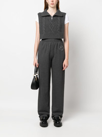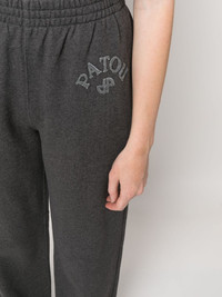 logo-applique cotton track pants Patou showcases its casual side with these track pants, crafted from soft cotton fleece. The grey pair is adorned with a boucle logo applique at the front for a tactile detail. Highlights - Anthracite grey - Cotton - Fleece texture - Applique logo - High-waisted - Elasticated waistband - Straight leg Imported Composition Cotton 100% SIZE & FIT Model measurements Height 5 ft 8 in(1.73 m) Bust/Chest 33.07 in(84 cm) Hips 35.03 in(89 cm) Waist 24.8 in(63 cm) FittingInformation Designed for a straight-leg fit, these trousers allow for a close fit at the waist and an unrestricted, comfortable fit over the leg Adjust this piece’s waistband to your preference using the drawstring Made from a midweight non-stretch fabric, this piece offers minimal elasticity when worn This piece fits true to size – take your usual size Washing instructions Hand Wash
