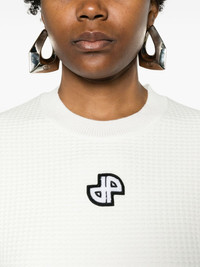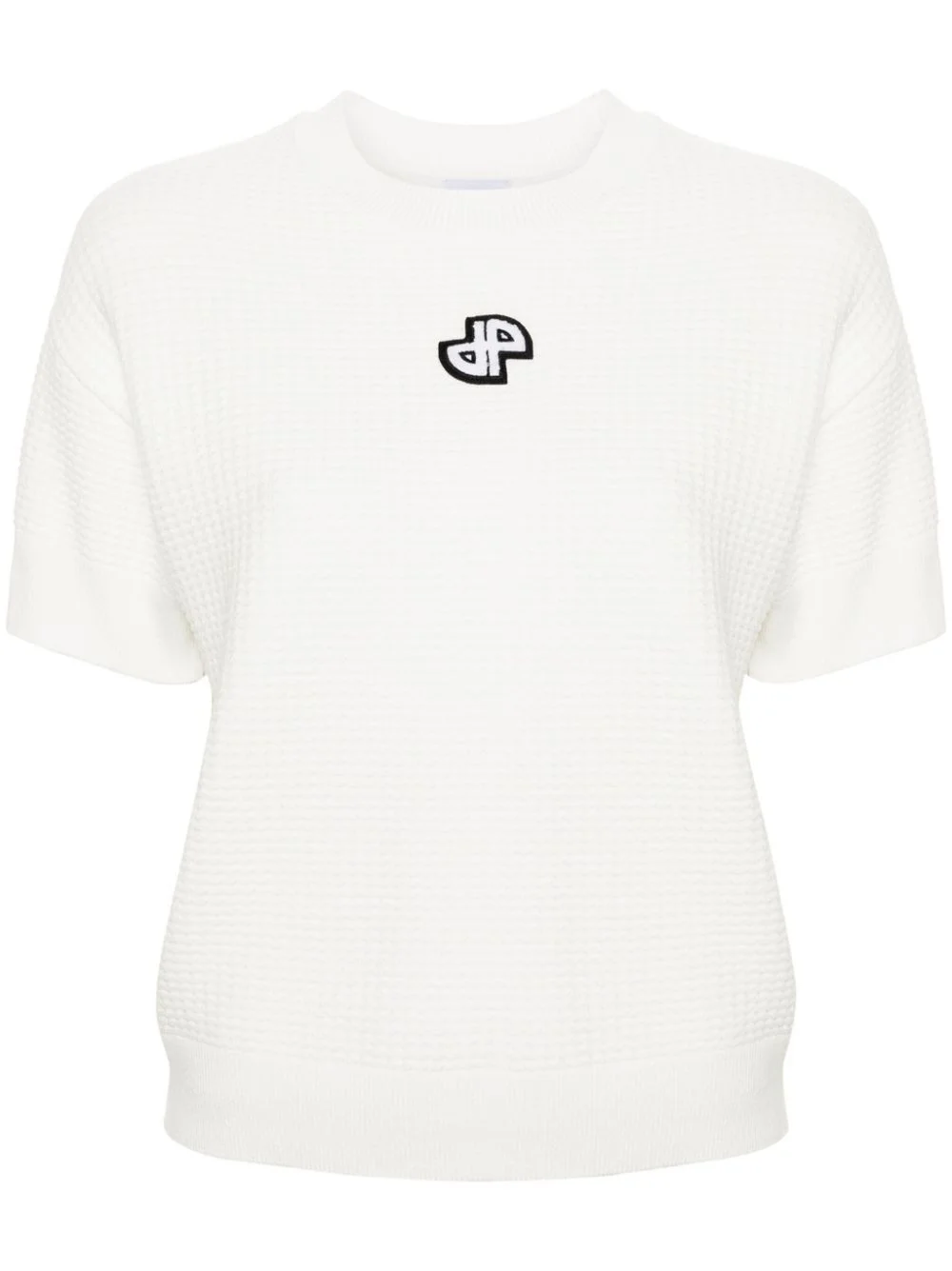 3D-knit short-sleeved jumper Highlights - Ivory white - Knitted construction - Applique logo - Crew neck - Short sleeves - Ribbed cuffs and hem - Straight hem Imported Composition Viscose 72%, Polyester 28% SIZE & FIT Model measurements Height 5 ft 11 in(1.8 m) Bust/Chest 31.49 in(80 cm) Hips 36.61 in(93 cm) Waist 24.4 in(62 cm) FittingInformation Designed for a relaxed fit, this piece allows for comfort and movement when worn Made with a midweight knit, this piece offers some stretch This piece fits true to size – take your usual size