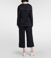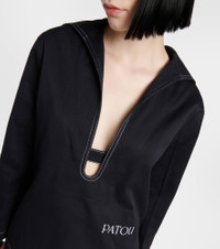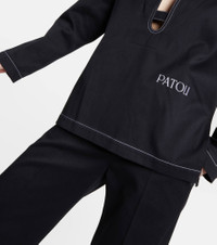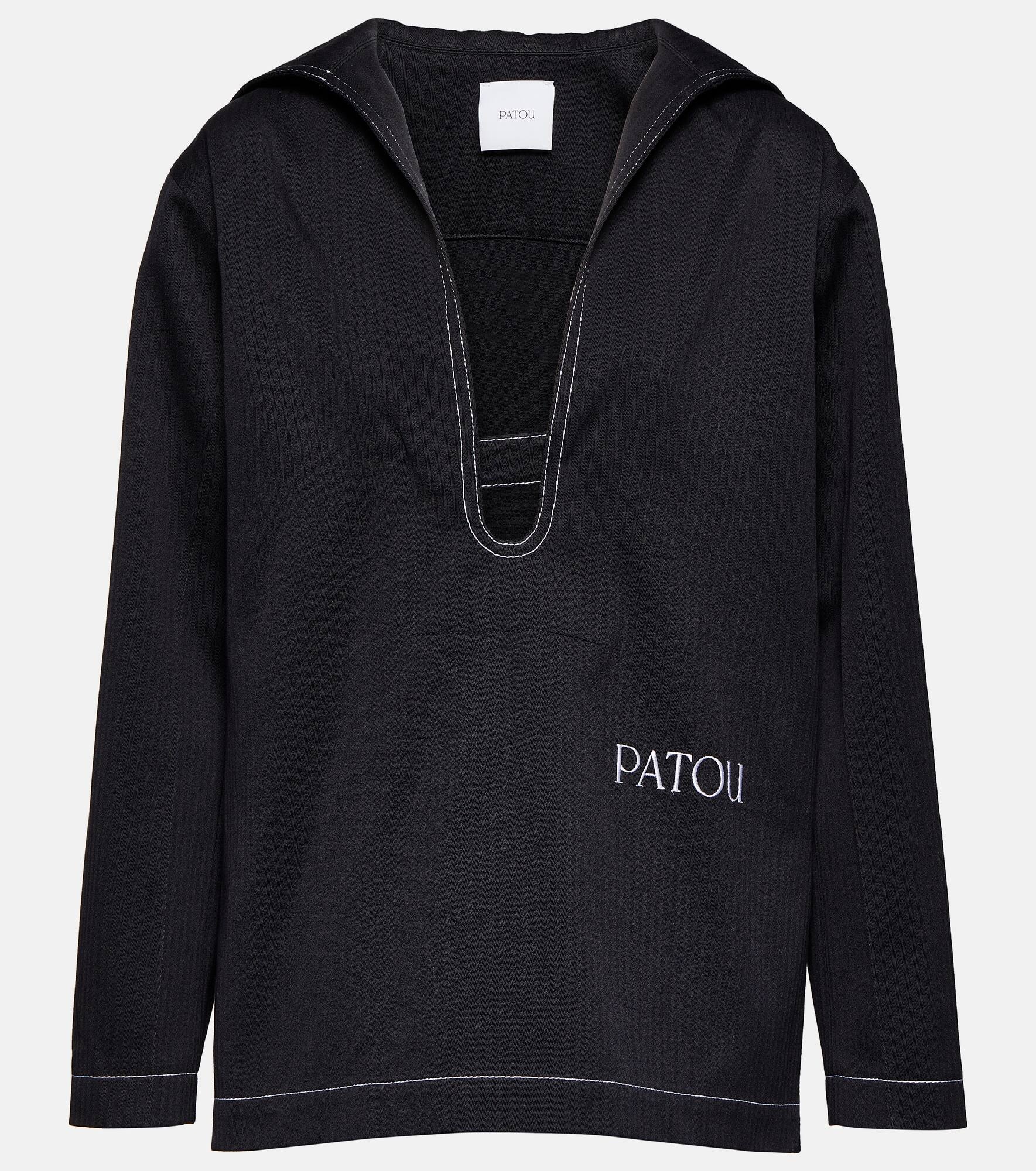 Patou's contemporary elegance defines this loose-fitting top. Made of cotton, this nautical-inspired design has a sailor collar, a notched neckline, contrasting topstitched trims, and a logo on the side. Product Details - Material: 100% cotton - Care instructions: dry clean - Made in Romania - Designer color name: Parisian Night - Color: navy - Item number: P00790740 Size & Fit - Fits large to size - we recommend trying one size smaller - Dropped shoulders - Oversized - Mid-weight material - Falls below the hip - The model seen in the picture is 178cm-5'10" and wearing a size FR 34
