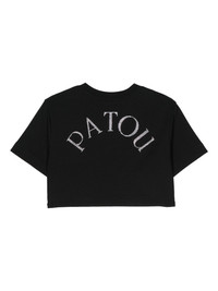 logo-embellished cropped T-shirt Highlights - Black - Cotton - Soft jersey - Round neck - Short sleeves - Embroidered logo to the front - Crystal embellishment - Cropped - Straight hem Imported Composition glass 100%, Cotton 100% Washing instructions Machine Wash