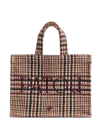 logo-embroidered houndstooth tote bag