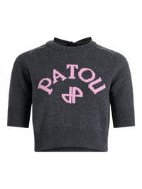 logo-embroidered sweater Highlights - Grey/pink - Ribbed knit - Short sleeves - Crew neck - Logo embroidery - Cropped Imported Composition Cotton 100%, Wool 100% Washing instructions Hand Wash