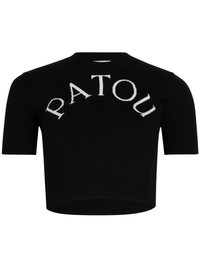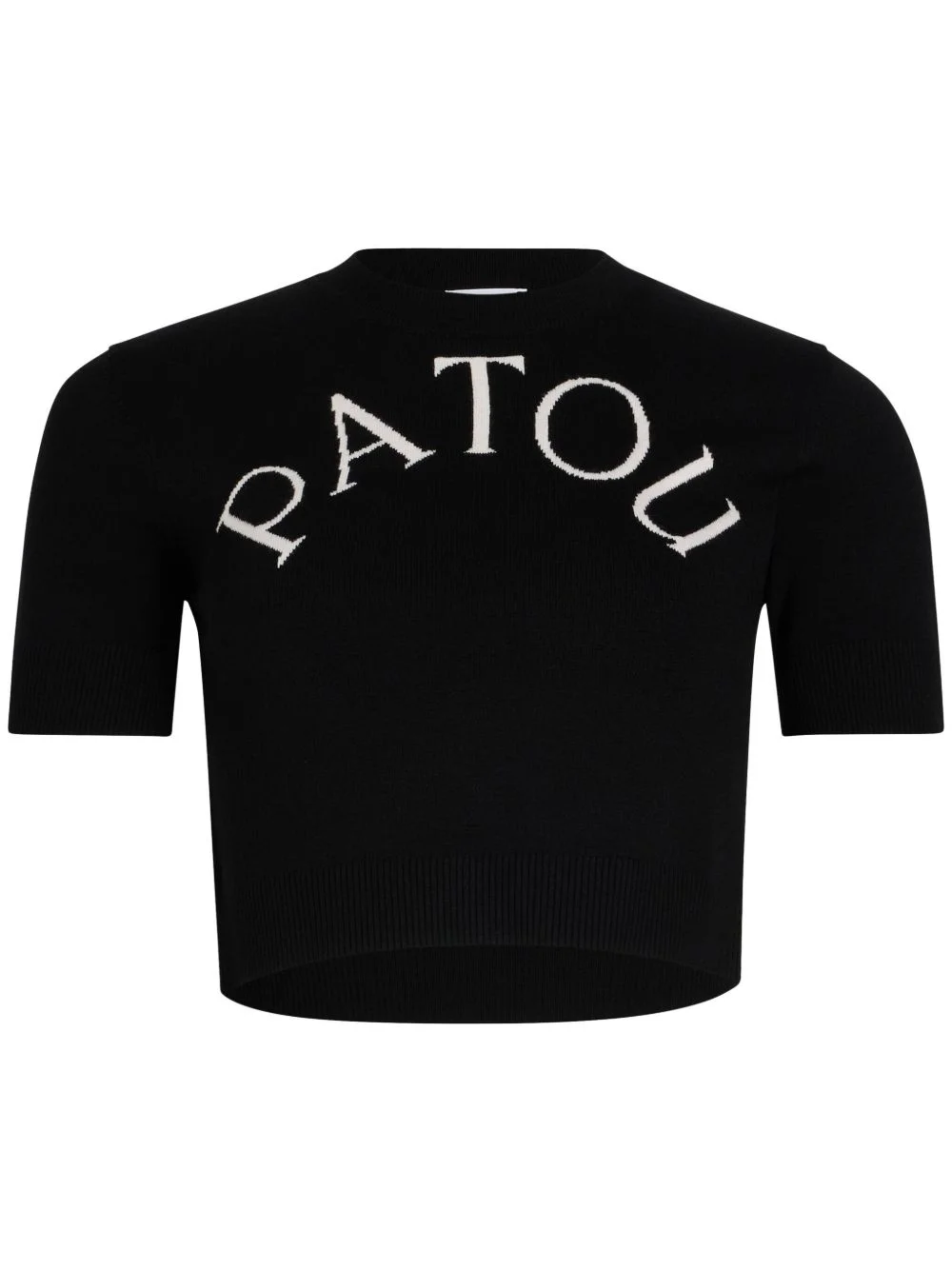 logo-jacquard cropped top Highlights - Black - Crew neck - Short sleeves - Straight hem Imported Composition Merino 100%