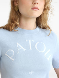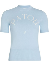 logo-jacquard knitted T-shirt Highlights - Light blue - Crew neck - Short sleeves - Straight hem Imported Composition Organic Cotton 70%, Polyester 30%
