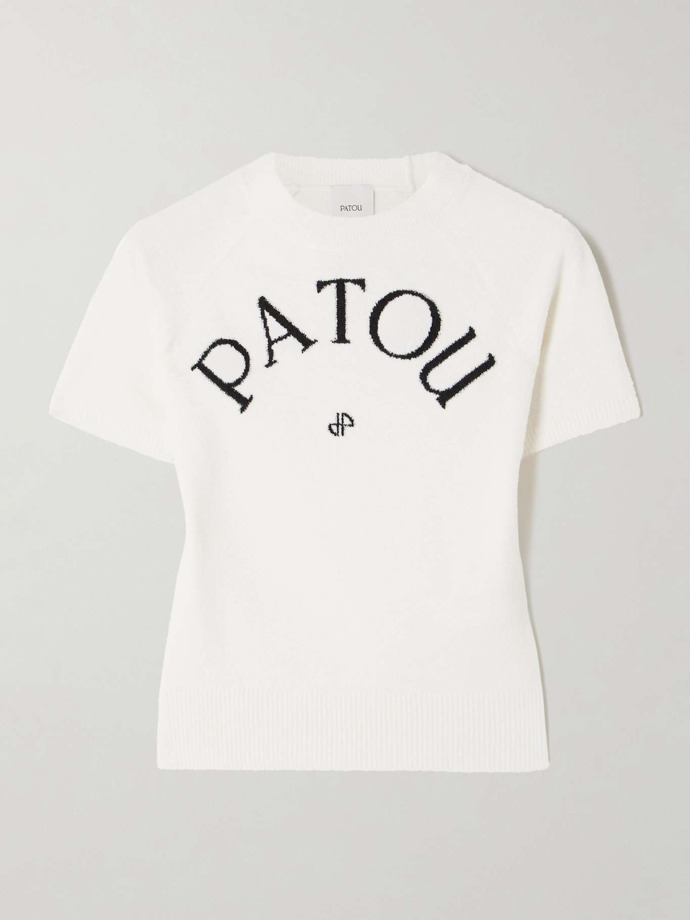EDITORS'NOTES Patou's effortlessly chic sweater promises endless styling potential. Made from soft cotton-blend, it's jacquard-knitted with the label's logo and fits slim, so it's easy to tuck in. Complement yours with dainty gold jewelry. SIZE & FIT Model measurements: - Fits true to size, take your normal size - Designed for a slim fit - Mid-weight knit - Model is 177cm/ 5'10" and is wearing a size Small - Bust: 81cm/ 31.9" - Waist: 65cm/ 25.6" - Hip: 82cm/ 32.3" DETAILS & CARE - White and black cotton-blend - Slips on - 75% cotton, 25% polyamide - Dry clean