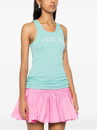 logo-print organic-cotton tank top Patou puts its stamp on this ribbed mint-green tank top, proudly stamping the front with its moniker in contrasting white. The JP monogram at the back pays homage to the brand’s eponymous founder. Highlights - Mint green - Cotton - Fine ribbed - Scoop neck - Sleeveless - Logo print to the front - Logo print to the rear - Straight hem Imported Composition Cotton 100% SIZE & FIT Model measurements Height 5 ft 9 in(1.76 m) Bust/Chest 31.1 in(79 cm) Hips 36.61 in(93 cm) Waist 24.8 in(63 cm) FittingInformation Designed for a close fit throughout Made from a midweight non-stretch fabric, this piece offers minimal elasticity when worn This piece fits true to size – take your usual size Washing instructions Machine Wash