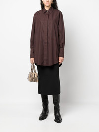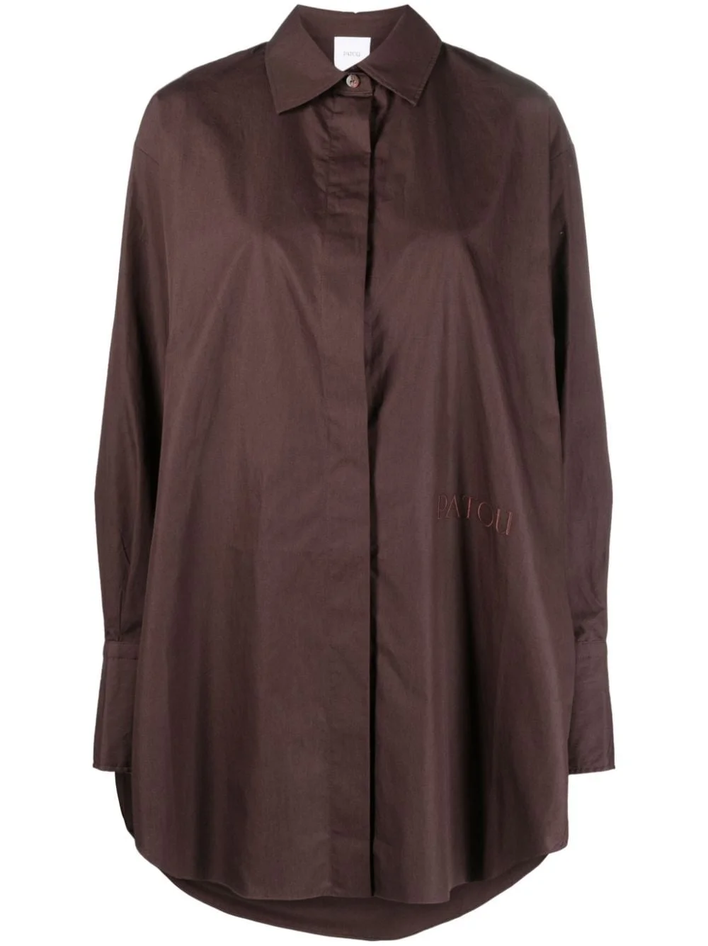 long-sleeve shirt dress Patou is known for an elegant yet effortless design style. Reflected on this shirt dress, the garment has a classic tailored construction and a monochromatic hue. Highlights - Brown - Classic collar - Long sleeves - Front button fastening Imported Composition Cotton 100% SIZE & FIT Model measurements Height 5 ft 9 in(1.75 m) Bust/Chest 33.07 in(84 cm) Hips 35.03 in(89 cm) Waist 24.01 in(61 cm) FittingInformation Designed to be unstructured, offering a loose fit throughout Made from a midweight non-stretch fabric This piece fits true to size – take your usual size Washing instructions Machine Wash
