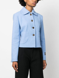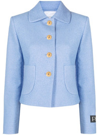 long-sleeve tailored jacket Patou is known for an elegant yet effortless design style. Reflected on this single-breasted jacket, the garment features a classic tailored construction and a logo patch at the sleeve. Highlights - Blue - Notched lapels - Long sleeves - Logo patch at the sleeve - Front button fastening Imported Composition Cotton 34%, Viscose 21%, Linen/Flax 20%, Polyamide 15%, Polyester 8%, Elastane 2% SIZE & FIT Model measurements Height 5 ft 10 in(1.78 m) Bust/Chest 32.67 in(83 cm) Hips 35.43 in(90 cm) Waist 23.22 in(59 cm) Measurement CHEST 32.28 in(82 cm) SLEEVE LENGTH 24.4 in(62 cm) LENGTH 20.47 in(52 cm) FittingInformation Designed for a slim fit that sits just away from the body offering a close yet comfortable fit Made from a midweight fabric This piece fits true to size – take your usual size Washing instructions Dry Clean Only