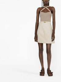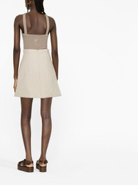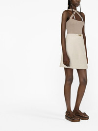 medallion A-line skirt French-label Patou's timeless yet bold take on garments punctuates its SS23 edit, as shown by this light beige mini skirt. Cut for an above-the-knee length, this number sits high at the waist for an elongating silhouette whilst a gold-tone medallion takes centre stage at the front. Imported Composition Cotton 100% SIZE & FIT Model measurements Height 5 ft 10 in(1.79 m) Bust/Chest 31.1 in(79 cm) Hips 35.03 in(89 cm) Waist 24.01 in(61 cm) FittingInformation This piece fits true to size. We recommend you get your regular size Designed to be fitted at the waist and hips, loose over the leg Made with a mid-weight non-stretch fabric Washing instructions Dry Clean Only