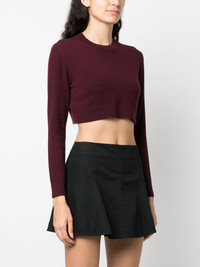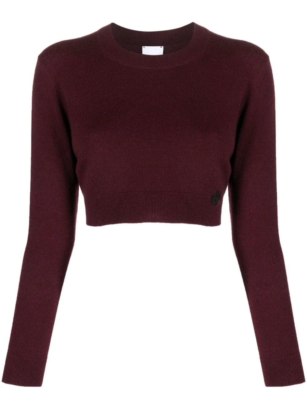 merino-blend cropped jumper Patou puts a characteristically playful spin on knitwear with this jumper. It's cut from a blend of merino and cashmere to an exaggerated cropped silhouette and is embroidered with the signature moniker on the side. Highlights - Red - Merino wool blend - Cashmere - Knitted construction - Embroidered logo to the side - Crew neck - Long sleeves - Ribbed cuffs and hem - Cropped Imported Composition Merino 90%, Cashmere 10% SIZE & FIT Model measurements Height 5 ft 10 in(1.79 m) Bust/Chest 33.07 in(84 cm) Hips 35.82 in(91 cm) Waist 24.01 in(61 cm) FittingInformation Designed for a slim fit that sits just away from the body offering a close yet comfortable fit Made with a lightweight knit, this piece offers some stretch This piece fits true to size – take your usual size Washing instructions Hand Wash