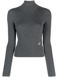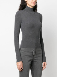merino-blend mock-neck jumper Patou showcases the art of simplicity with this ribbed knit top. Crafted from a merino wool blend, it's embroidered with the signature moniker on the side. Highlights - Grey - Merino wool blend - Ribbed knit - Embroidered logo to the side - Mock neck - Long sleeves Imported Composition Merino 88%, Polyamide 11%, Elastane 1% SIZE & FIT Model measurements Height 5 ft 10 in(1.79 m) Bust/Chest 33.07 in(84 cm) Hips 35.82 in(91 cm) Waist 24.01 in(61 cm) FittingInformation Designed for a close fit throughout Made with a midweight knit, this piece offers some stretch This piece fits true to size – take your usual size Washing instructions Hand Wash