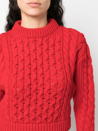 merino wool-blend jumper Patou's preference for Parisian style is finely captured in this jumper. It's cut from a blend of merino wool and cashmere blend to a chunky cable knit. Highlights - Red - Merino wool blend - Cashmere - Cable knit - Crew neck - Long sleeves Imported Composition Merino 90%, Cashmere 10% Washing instructions Hand Wash