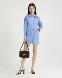 The Mini Poplin Shirt Dress in Heritage Blue Stripes by Patou is a long sleeve, collared dress featuring two side slit pockets and button front placket crafted in a stripe pattern. - 100% Organic Cotton - #DR16401905065