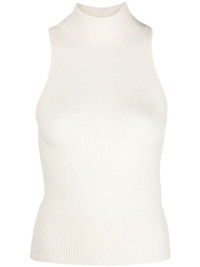 mock-neck sleeveless knitted top Highlights - Ivory white - Alpaca wool-blend - Knitted construction - Brushed finish - Ribbed mock neck - Sleeveless - Ribbed hem Imported Composition Alpaca Wool 68%, Polyamide 30%, Spandex/Elastane 2% SIZE & FIT Model measurements Height 5 ft 10 in(1.77 m) Bust/Chest 35.03 in(89 cm) Hips 35.03 in(89 cm) Waist 23.62 in(60 cm) FittingInformation Designed for a close fit throughout The ribbed hem offers a close, comfortable fit Made with a midweight knit, this piece offers some stretch This piece fits true to size – take your usual size Washing instructions Hand Wash