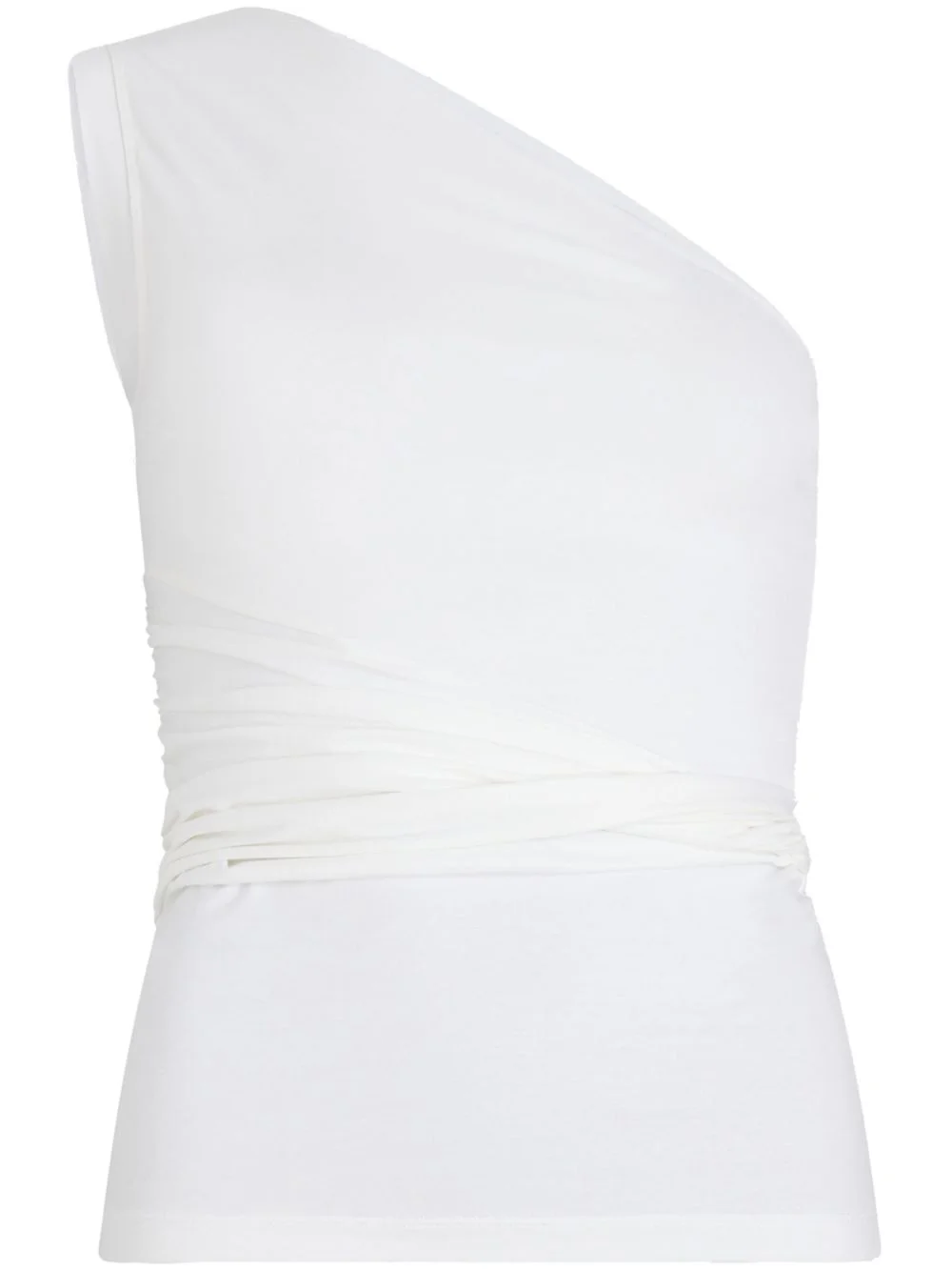 one-shoulder organic cotton top Highlights - White - Gold-tone logo plaque - Layered details - Ruched detailing Imported Composition Organic Cotton 100%