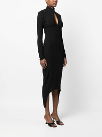 open-back midi dress Curved shapes and asymmetric detailing take centre stage at Patou for SS23, as evidenced by this black midi dress. An alluring open back elevates the garment, while keyhole detailing at the front nods to the collection's focus on sensuality. Imported Composition Cotton 59%, Viscose 40%, Spandex/Elastane 1% SIZE & FIT Model measurements Height 5 ft 10 in(1.79 m) Bust/Chest 33.07 in(84 cm) Hips 35.03 in(89 cm) Waist 24.4 in(62 cm) Measurement HIPS 26.77 in(68 cm) WAIST 20.47 in(52 cm) Washing instructions Dry Clean Only