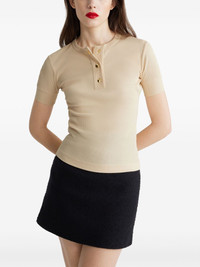 Henley top Highlights - Beige - Organic cotton - Fine ribbed - Round neck - Front press-stud placket - Short sleeves - Straight hem Imported Composition Organic Cotton 100%
