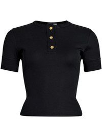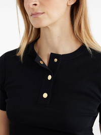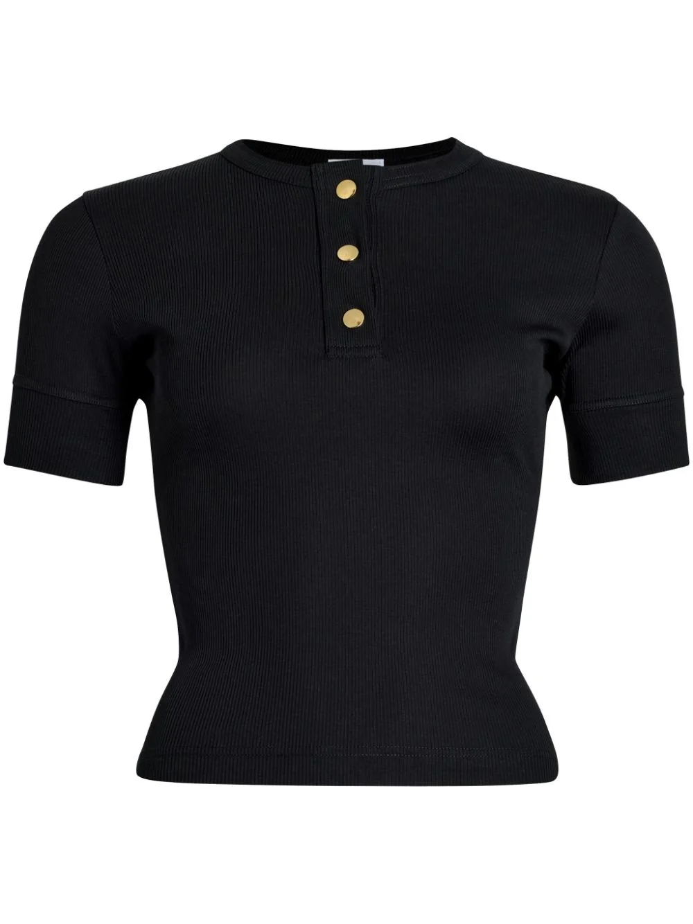 Henley top Highlights - Black - Organic cotton - Fine ribbed - Round neck - Front press-stud placket - Short sleeves - Straight hem Imported Composition Organic Cotton 100%