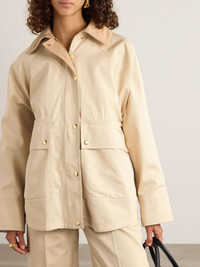 EDITORS'NOTES Patou perfectly blends practicality and chic style with this jacket. Made from ecru cotton-twill, it has a tonal wool-blend collar and sizable flap pockets. Internal drawcords allow you to cinch in the relaxed shape. Wear it with the matching pants in our edit. SIZE & FIT Model measurements: - Fits true to size, take your normal size - Designed for a relaxed fit, use the adjustable drawstring to cinch in at the waist - Lightweight, non-stretchy fabric - Model is 180cm/ 5'11" and is wearing a FR 36 - Bust: 81cm/ 32" - Waist: 63cm/ 25" - Hip: 91cm/ 36" DETAILS & CARE - Ecru cotton-twill, beige wool-blend - Snaps and concealed zip fastening through front - 100% cotton; trim: 80% wool, 20% polyamide - Dry clean